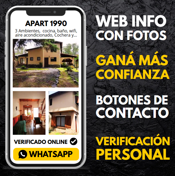 Tendras tu Propio perfil web profesional para que tengas la informacion mas importante de tu alojamiento en un solo lugar: Ubicacion, Whatsapp, Redes Sociales, Galeria de Imagenes y Fotos y Mucho mas!